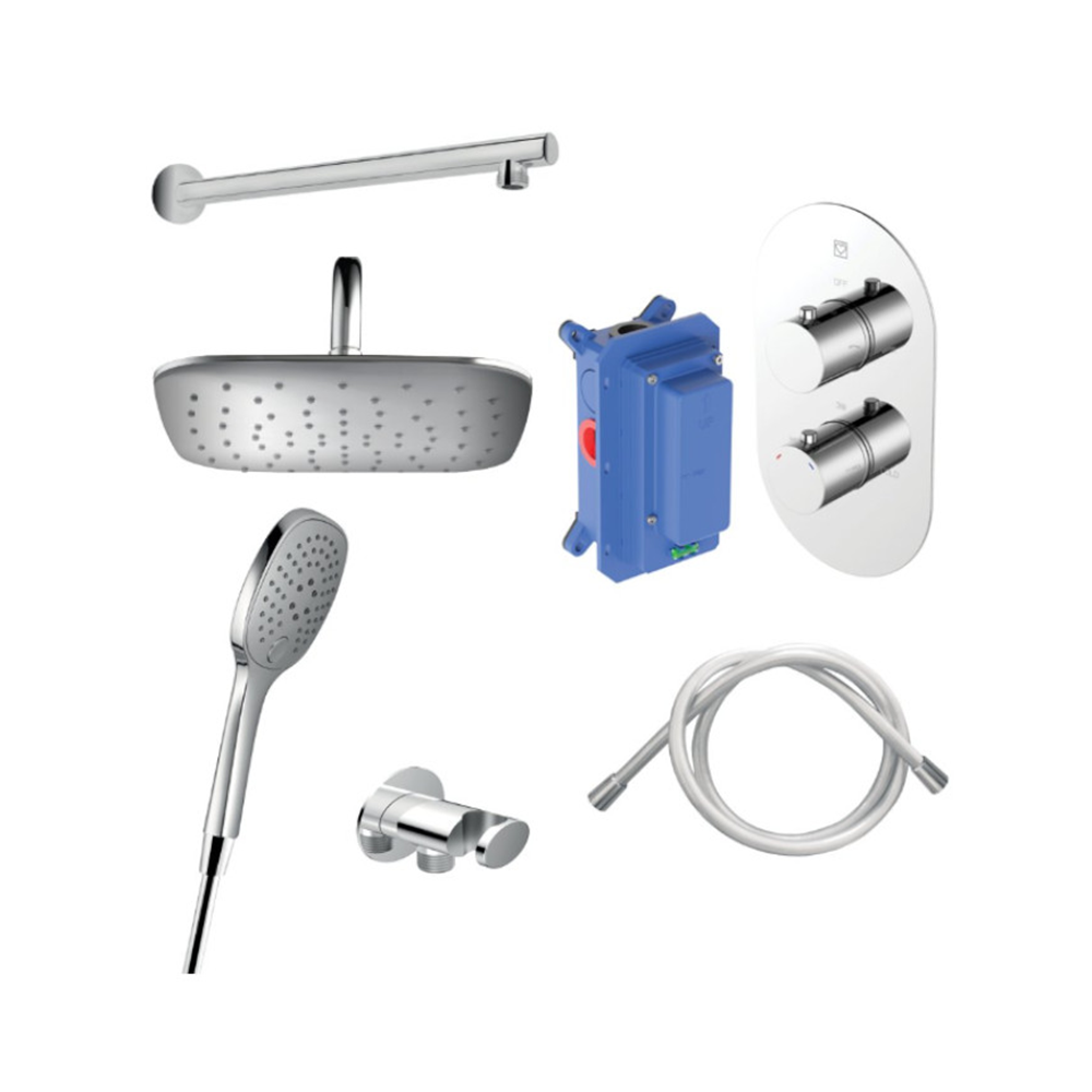 Elite ugradni set za kadu termostatski 00379 iz HERZ Fresh serije je kompletni termostatski set za kadu dizajniran za skriveno ugrađivanje u zid, idealan za savremena kupatila koja zahtevaju preciznu kontrolu temperature, moderan izgled i vrhunski kvalitet. Ovaj ugradni set za kadu termostatski HERZ donosi sigurnost i udobnost zahvaljujući naprednom termostatskom mehanizmu koji održava stabilnu temperaturu vode, sprečava iznenadne promene i omogućava značajnu uštedu energije. Sa svojim luksuznim dizajnom, termostatski set za kadu HERZ uključuje sve potrebne komponente za jednostavnu montažu i dugotrajnu upotrebu. Montaža unutar zida oslobađa prostor i doprinosi čistim linijama kupatila, dok vrhunski materijali garantuju trajnost i otpornost na habanje. Ako tražite pouzdan, estetski privlačan i funkcionalan ugradni set za kadu termostatski HERZ, model Elite 00379 je savršen izbor za tuš-kade i kombinovana tuširanja.
