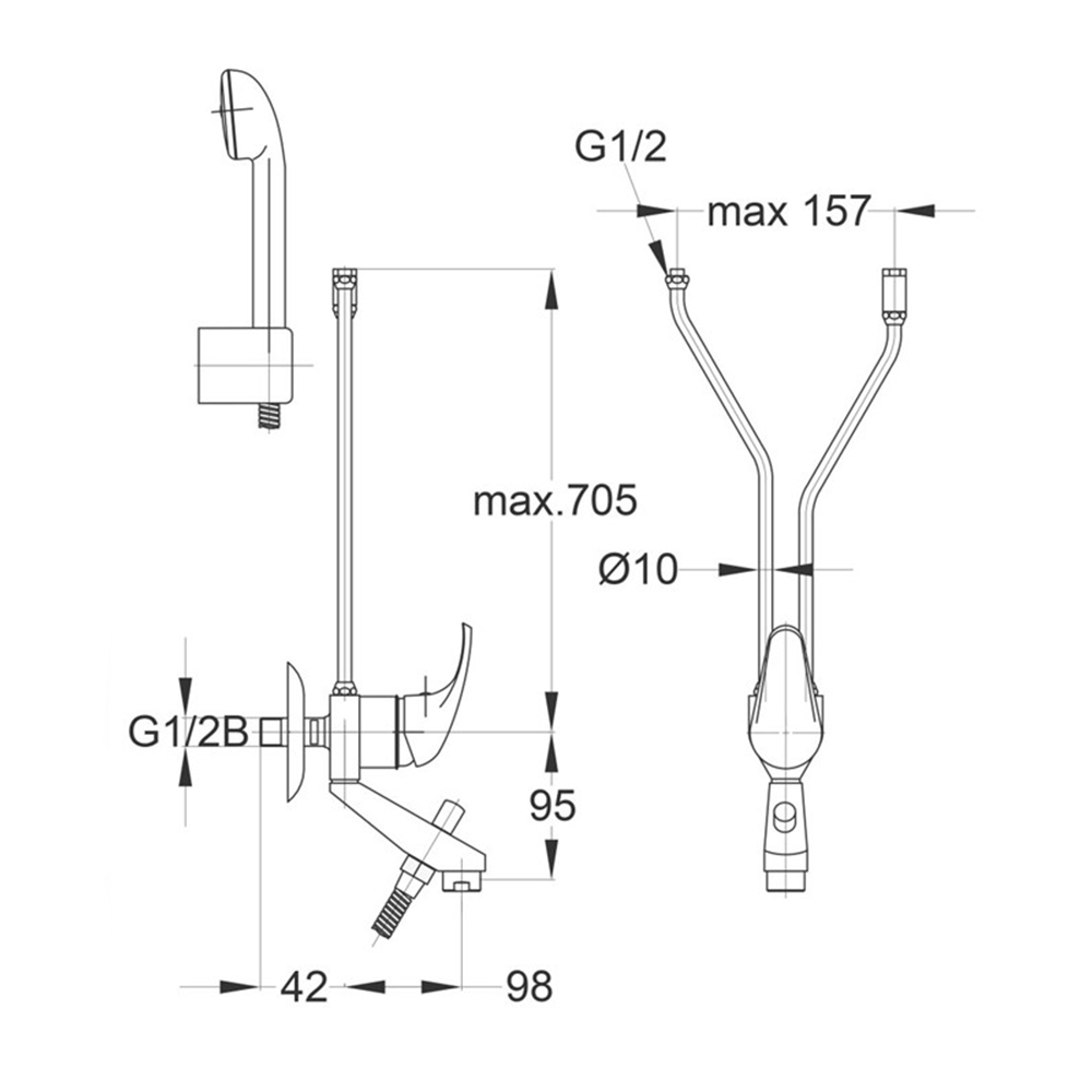 -Zidni držač za tuš ručicu u kompletu
