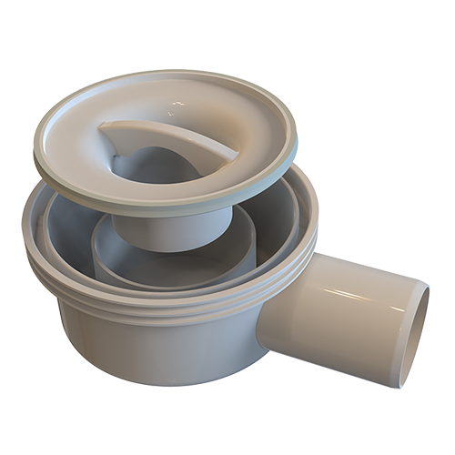 -Odvod otpadne vode iz tuševa u ravni sa podom sa sprečavanjem povratka neprijatnih mirisa vodenim zaptivačem
