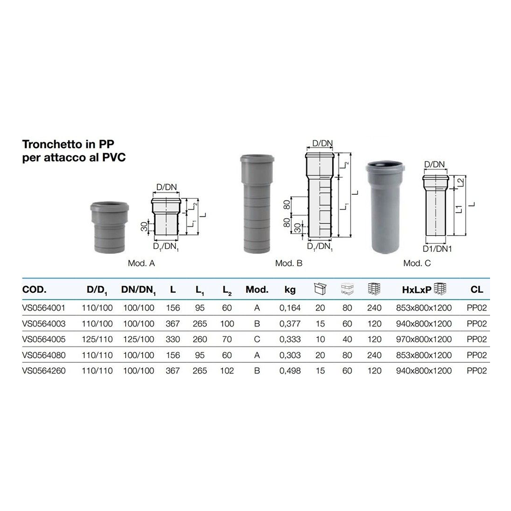 VALSIR PRELAZ PVC 110/100 VS0564003